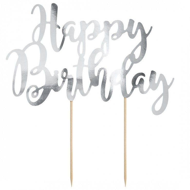 Cette décoration argentée à planter sur un gâteau d'anniversaire est dotée de deux pics en bois.